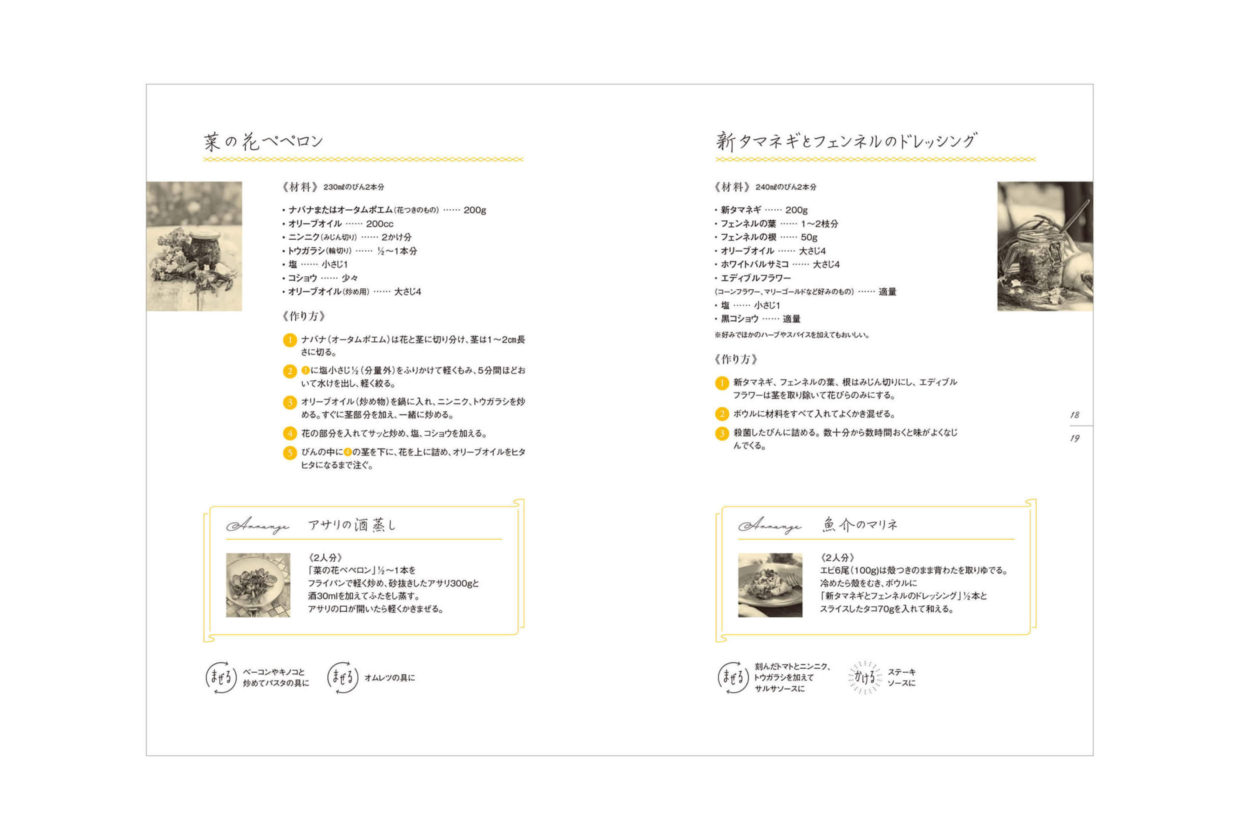 NHKテキスト「やさいの時間」の連載から生まれた西村千恵さんのレシピブックです。撮影では、四季折々の湘南の畑に同行。打ち合わせから撮影、本の構成にいたるまで毎回ライブセッションのように進んでいきました。野菜を育てる豊かな時間を瓶詰めにするファームキャニングと同じように、西村さんはじめ素晴らしい仲間たちとの記憶がギュッと詰まった思い出深い本です。