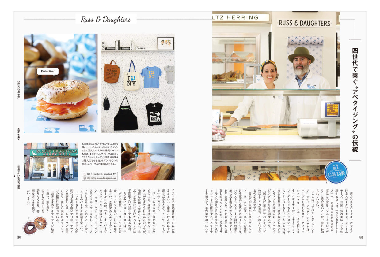 風光明媚なシーン写真を起用することが多い表紙で、初の切り抜き写真に挑戦。NY特集は地元民になりきって、ローカルなデリを食べ歩きしたくなるカジュアルなデザインに。全体的に見出しなどにもスミを単色で配し、都会的なデザインにまとめました。